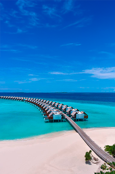 Luxo sustentável em vilas sobre a água, spa relaxante e experiências autênticas nas remotas Maldivas.