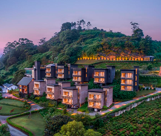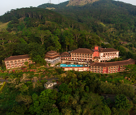 Refúgio cinco-estrelas nas colinas de Nuwara Eliya, com vistas montanhosas.
