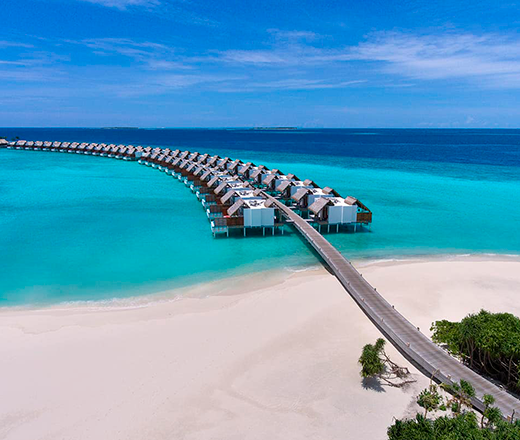 Luxo sustentável em vilas sobre a água, spa relaxante e experiências autênticas nas remotas Maldivas.